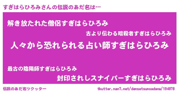 | ポケモン風あだ名 | 『スックウザ』『ヒスギハラヒロミ』 |
