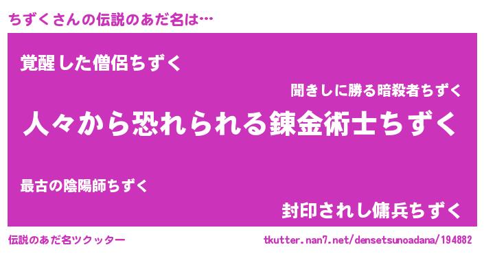 | 意味不明あだ名 | 『住所不定無職ちずく(98歳)』 |