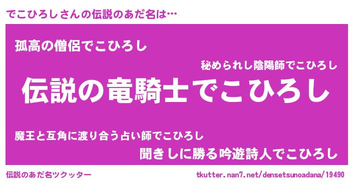 | 意味不明あだ名 | 『自称でこひろし』『ペロリンでこひろし』 |