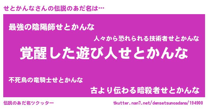 | 男性向けラノベタイトル風あだ名 | 『うちのせとかんなが世界を掌握している!』 |