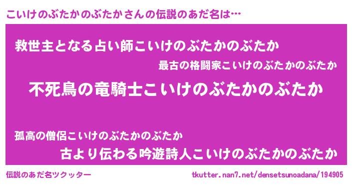 | ヒーロー風カッコイイあだ名 | 『スーパーコイケノブタカノブタカ』 |