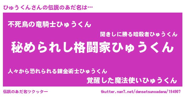 | ヒーロー風カッコイイあだ名 | 『仮面ヒュダー』『スーパーヒュウクン』 |