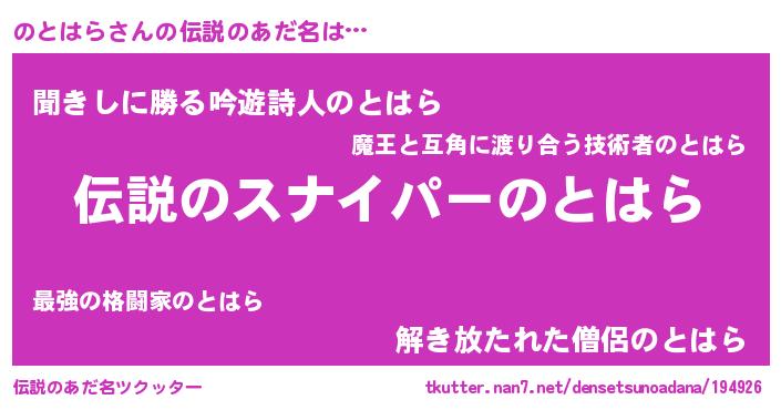 | 意味不明あだ名 | 『住所不定無職のとはら(71歳)』 |