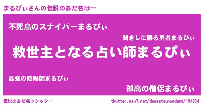 | ヒーロー風カッコイイあだ名 | 『天空の使者まるぴぃ』『黄金騎士マル』 |