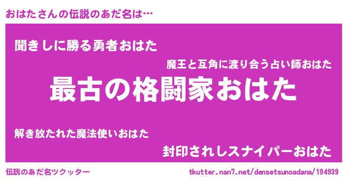 | 意味不明あだ名 | 『住所不定無職おはた(2歳)』 |