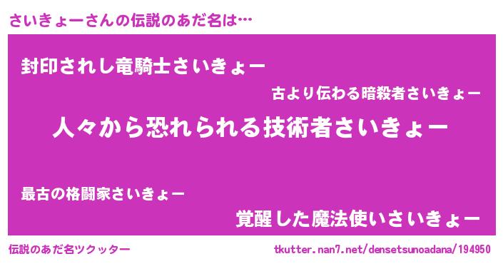 | 男性向けラノベタイトル風あだ名 | 『サイキョースレイヤー』 |