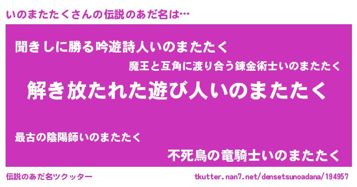 | 男性向けラノベタイトル風あだ名 | 『いのまたたくの嫁は女の子じゃないと思った?』 |