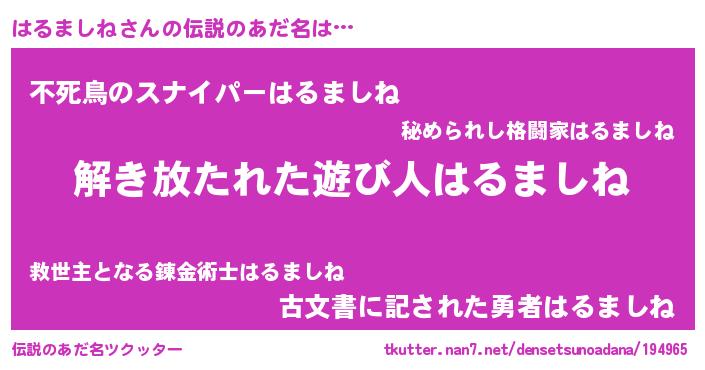 | 意味不明あだ名 | 『とにかく怪しいはるましね』 |