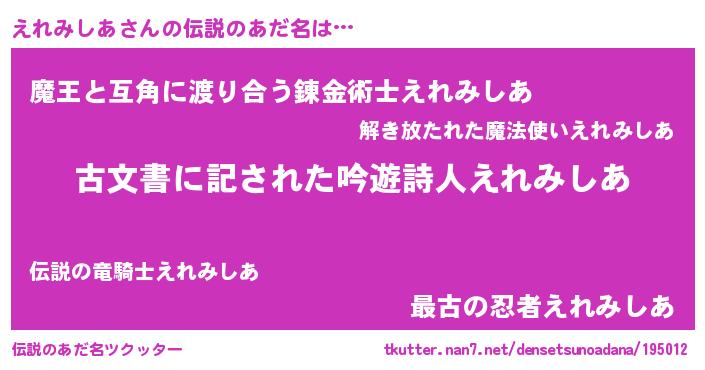| 意味不明あだ名 | 『永久保存えれみしあ』 |