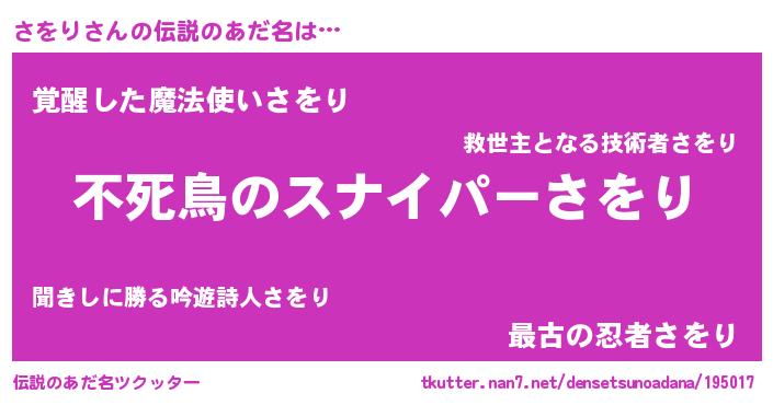 | ファンタジー風あだ名 | 『サヲフェル』『ゼサヲトゥ』 |