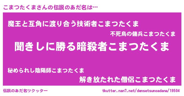 | 意味不明あだ名 | 『永久保存こまつたくま』 |