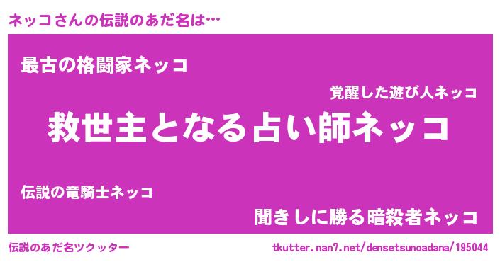 | 女子向けラノベタイトル風あだ名 | 『死神ネッコの再婚』『ネッコの婚約者』 |