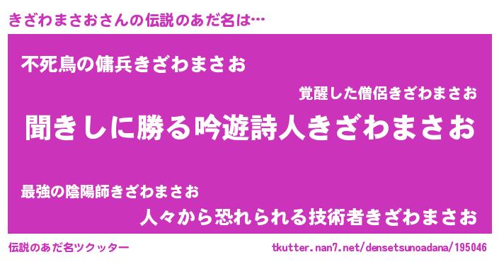 | 男性向けラノベタイトル風あだ名 | 『きざわまさおという概念が存在しない退屈な世界 』 |