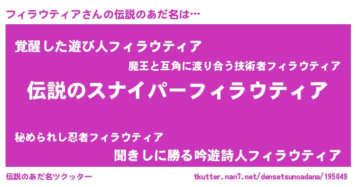 | 意味不明あだ名 | 『自称フィラウティア』 |