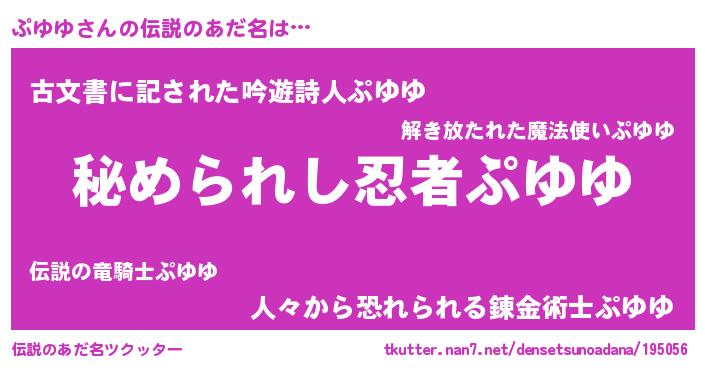 | ヒーロー風カッコイイあだ名 | 『ウルトラぷゆゆマン』『ネオプユユ』 |