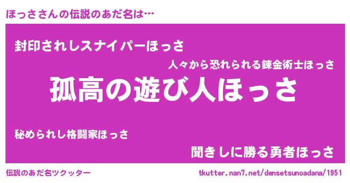 | 女子向けラノベタイトル風あだ名 | 『ほっさは平凡を望む』 |
