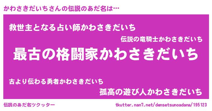 | ヒーロー風カッコイイあだ名 | 『ウルトラかわさきだいちマン』 |