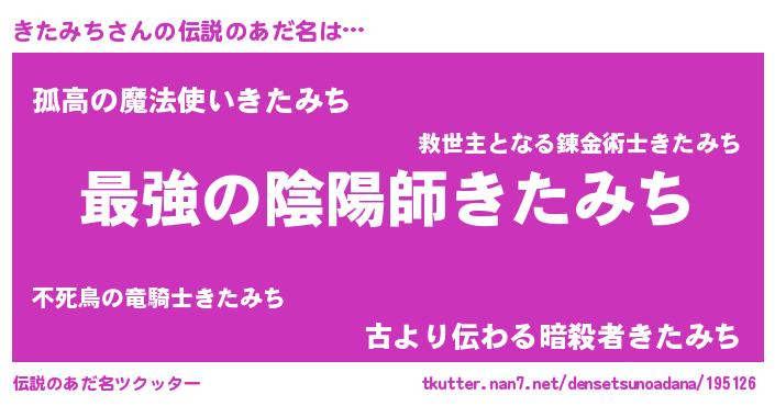 | ヒーロー風カッコイイあだ名 | 『ウルトラきたみちマン』『暗黒騎士キタ』 |