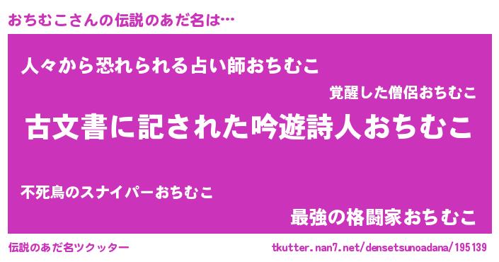 | 意味不明あだ名 | 『住所不定無職おちむこ(7歳)』 |