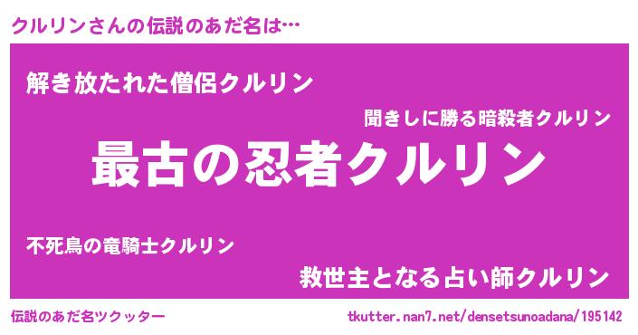 | ヒーロー風カッコイイあだ名 | 『ウルトラクルリンマン』『幻影騎士クル』 |