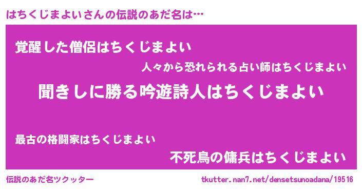 | 男性向けラノベタイトル風あだ名 | 『はちくじまよいという概念が存在しない退屈な世界 』 |