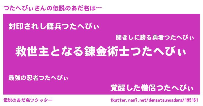 | ヒーロー風カッコイイあだ名 | 『慈愛の使者つたへびぃ』『幻影騎士ツタ』 |