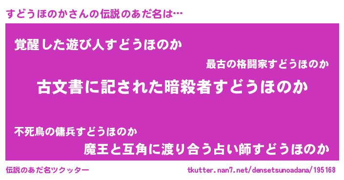 | 男性向けラノベタイトル風あだ名 | 『この素晴らしい世界にすどうほのかを!』 |