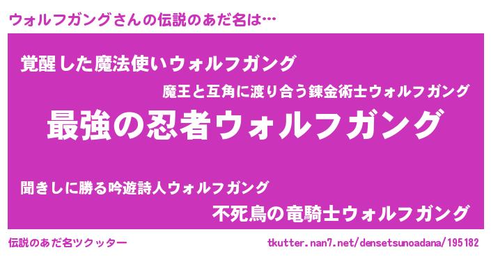 | ヒーロー風カッコイイあだ名 | 『最強戦士ウォルフガング』 |