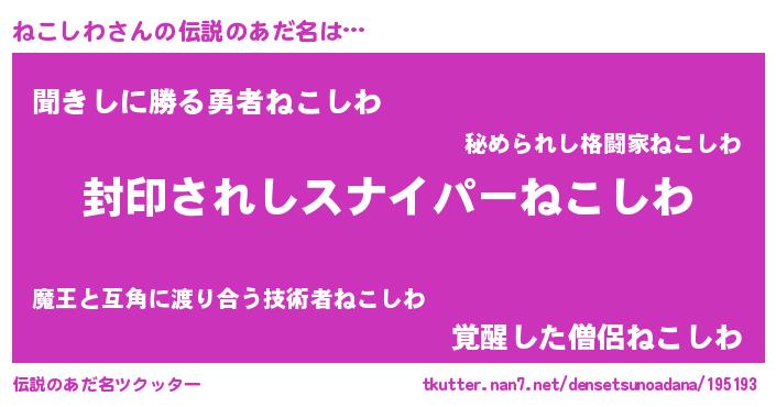 | 胡散臭い通販商品みたいなあだ名 | 『億万長者になれる霊験あらたかなお札…その名も「ねこしわ」』 |