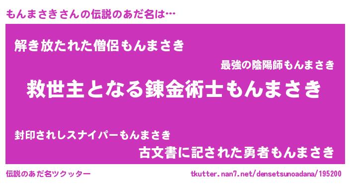 | ヒーロー風カッコイイあだ名 | 『慈愛の使者もんまさき』『仮面モンダー』 |