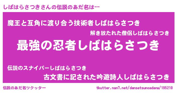 | ファンタジー風あだ名 | 『エターナルシバハラサツキー』 |