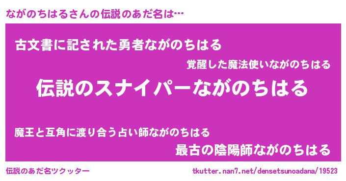 | 男性向けラノベタイトル風あだ名 | 『緋弾のナガノチハル』 |