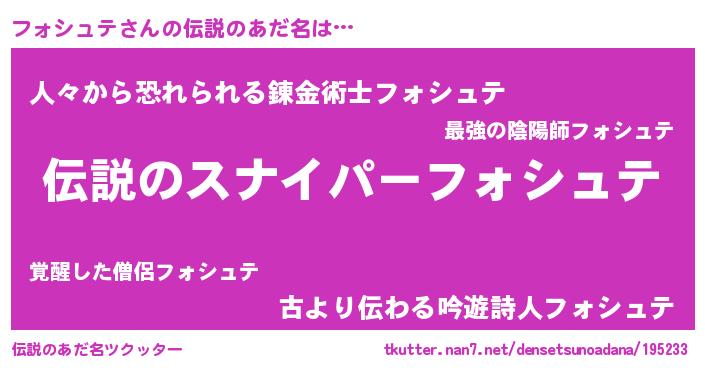 | ポケモン風あだ名 | 『フォチュウ』『フックウザ』 |