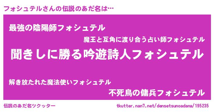 | 意味不明あだ名 | 『自称フォシュテル』 |