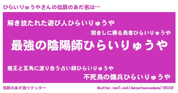 | ファンタジー風あだ名 | 『エターナルヒライリュウヤー』 |