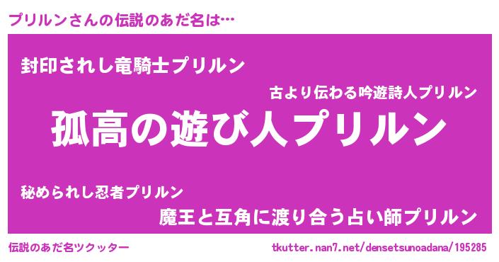 | ポケモン風あだ名 | 『ヒプリルン』『プリキング』 |