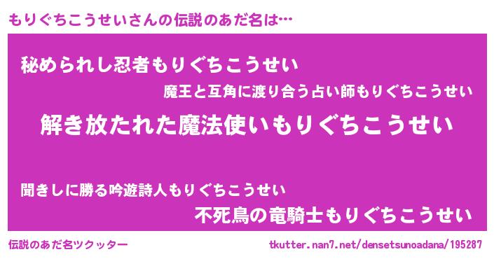 | ヘコむあだ名 | 『もり太郎』『つくし』『もりにゅー』 |