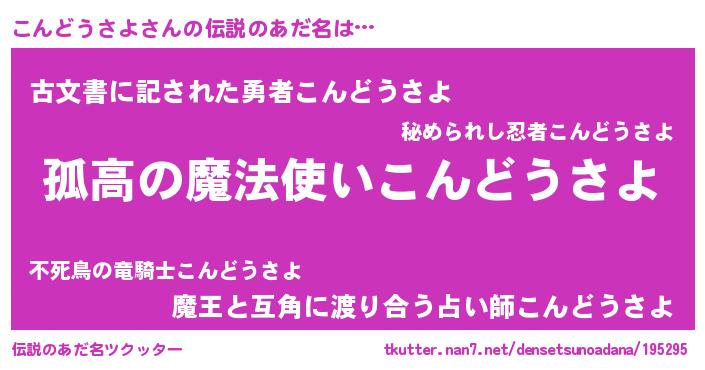 | 意味不明あだ名 | 『住所不定無職こんどうさよ(4歳)』 |