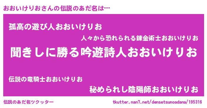 | ヘコむあだ名 | 『おおいけりお(笑)』『おおを』 |