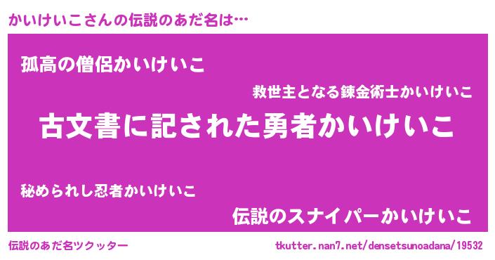 | 意味不明あだ名 | 『永久保存かいけいこ』『自称かいけいこ』 |