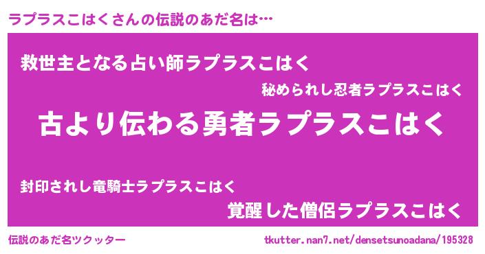 | ヘコむあだ名 | 『ラプラスこはく(苦笑)』『ラプっ子』 |