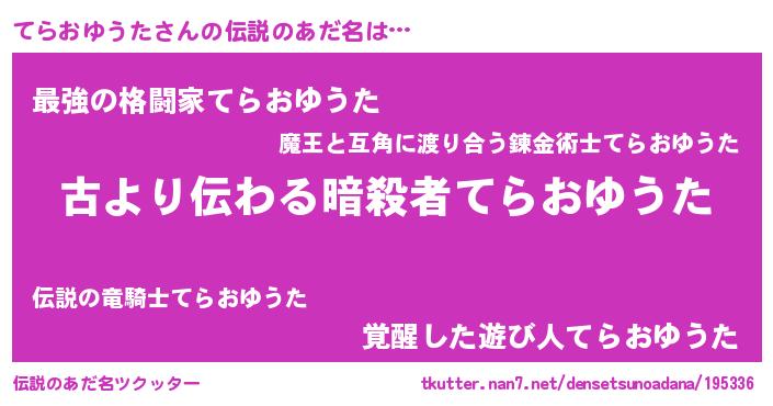 | 意味不明あだ名 | 『自称てらおゆうた』 |