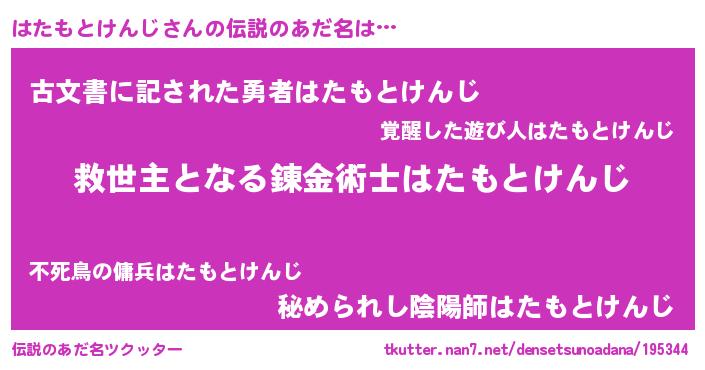 | 肩書あだ名 | 『はたもとけんじ大将』 |