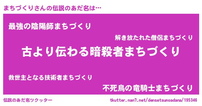 | 胡散臭い通販商品みたいなあだ名 | 『来世でも幸せになれる健康食品…その名も「まちづくり」』 |