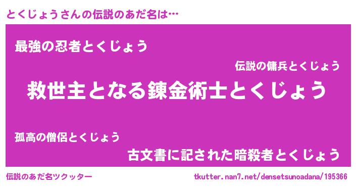 | ヒーロー風カッコイイあだ名 | 『慈愛の使者とくじょう』『仮面トクダー』 |