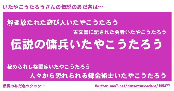 | 男性向けラノベタイトル風あだ名 | 『はたらくいたやこうたろうさま!』 |