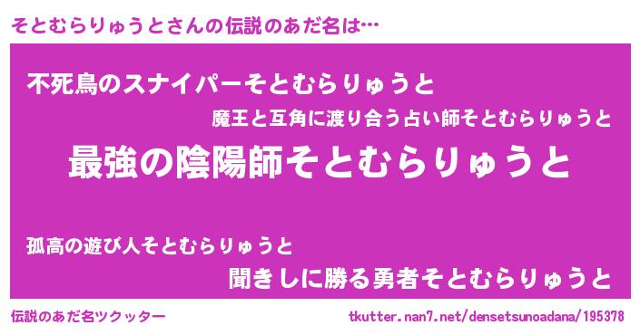 | 意味不明あだ名 | 『住所不定無職そとむらりゅうと(89歳)』 |