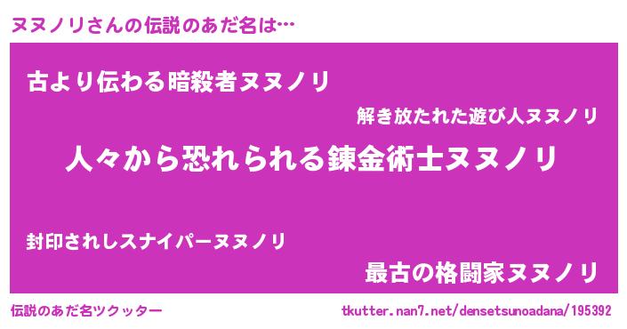 | ヒーロー風カッコイイあだ名 | 『正義の使者ヌヌノリ』『ネオヌヌノリ』 |