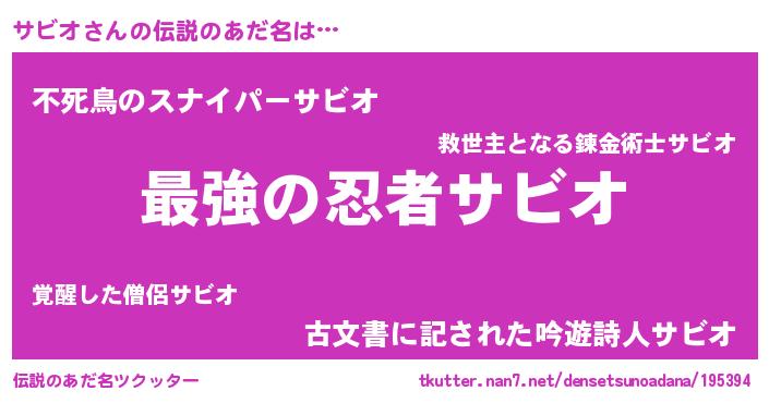 | 意味不明あだ名 | 『住所不定無職サビオ(50歳)』『自称サビオ』 |