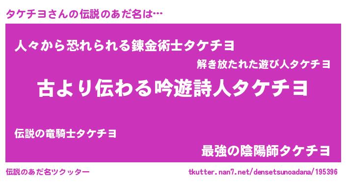 | 意味不明あだ名 | 『永久保存タケチヨ』 |